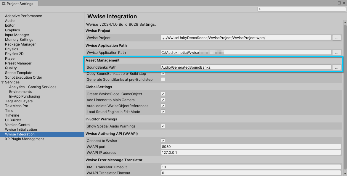 ![]() | Caution: This directory must be inside your Assets folder for the SoundBanks to be properly imported. |