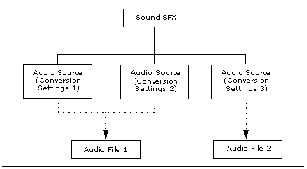 The various voice and sfx assets in your game are represented in Wwise by special audio structures called sound objects. These sound objects contain sources that are linked to the original audio file.