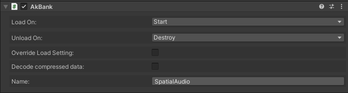AkTriggerEnter, for example, could be applied so that when a player enters a room the SoundBank loads. Be aware of the risk of lag in sound should the SoundBank not be loaded when a room sound would be needed. See Wwise 301's Loading SoundBanks using Triggers for a more thorough overview of using Triggers to load SoundBanks.AkTriggerExit, for example, could be applied so that when a player exits a room the SoundBank unloads.LoadBank function call immediately, which indicates whether the load request is successfully queued, and allows other operations to be performed while the actual loading continues in the background. The synchronous version blocks the main processing thread waiting for the load to complete. Asynchronous calls are best for large SoundBanks which do not need to be loaded immediately. LoadBankQuestions? Problems? Need more info? Contact us, and we can help!