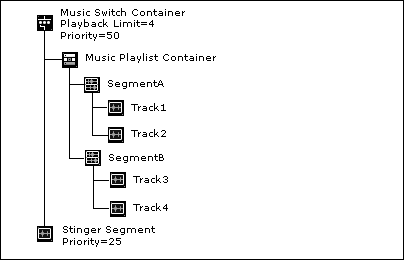 For more information about music objects and building your music hierarchies, refer to Building your interactive music hierarchies.