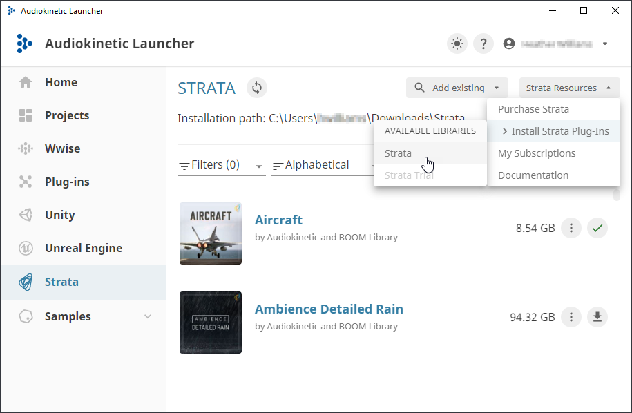 Strata subscriptions include the Wwise VST3 plug-in suite, the BOOM ENRAGE VST3 plug-in, and the IEM VST3 plug-in suite, which are all required for Strata REAPER projects. These plug-ins are available to paid and free Strata subscribers through the Launcher.