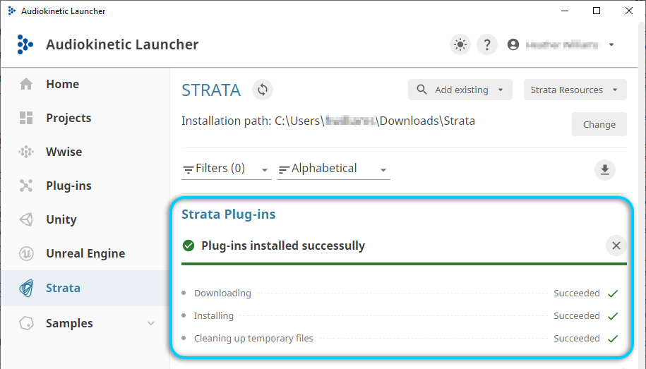 In the upper-right corner, click Strata Resources > Install Strata Plug-ins and then click either of the following:
