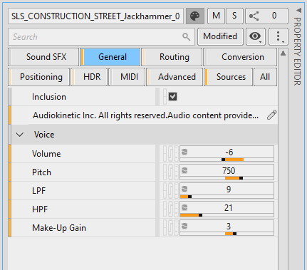 The following figure shows the General category for a Sound SFX.
