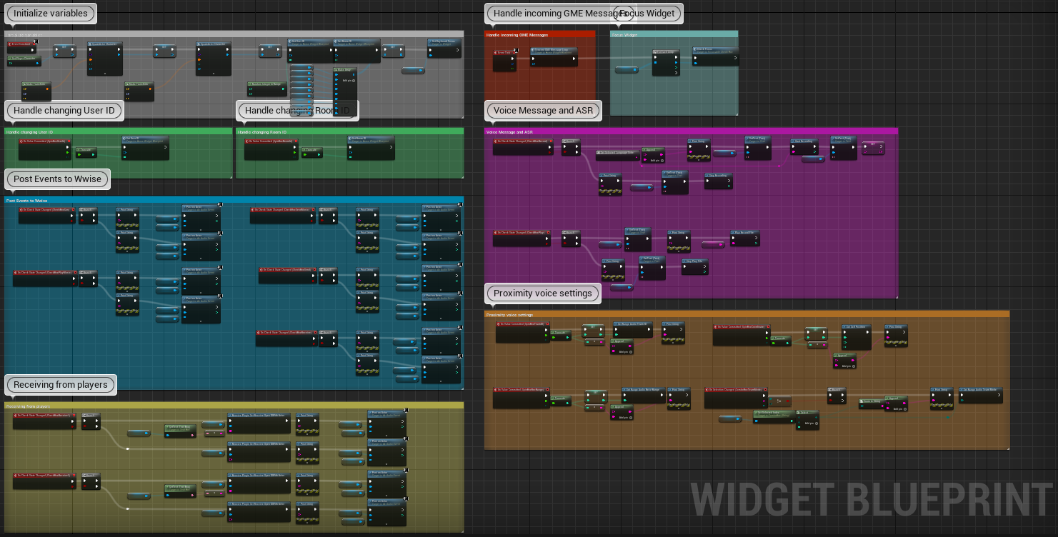The GME Unreal SDK is bundled with a GME Blueprint Sample, which can be added to the Unreal First Person template project and examined to understand how to use GME in an Unreal project (the Wwise Unreal Integration does not support Blueprint-only Unreal projects).
